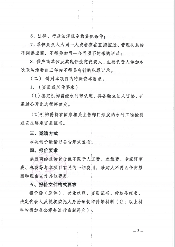 威远县大石包水库蓄水安全鉴定报告编制采购项目询价公告(第二次)