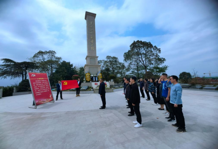 活动在慷慨激昂的国歌中拉开序幕,全体人员在烈士陵园纪念碑前庄严肃立,集体默哀,向革命英烈敬献鲜花。随后,工作人员向大家逐一介绍了革命先烈的英雄事迹,并组织大家擦拭英烈墓碑,以此表达对革命先烈的追思与缅怀。在巍然屹立的革命烈士纪念碑前,党总支副书记曾琳清同志带领大家满怀敬仰,重温了入党誓词,并表示要大力弘扬英烈精神,学习英烈先进事迹,铭记入党誓言,进一步坚定理想信念,永葆革命初心,把对英雄的无限缅怀和无尽敬仰化为工作中不断前进的动力,切实增强责任意识、担当意识、奉献意识,以实际行动继承先烈遗志。